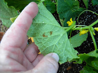 We treated everything with organic bug killers and things seemed to be doing okay for a while. At least, the plants that hadn't died were still green and leafy. Like the cucumbers and tomatoes: